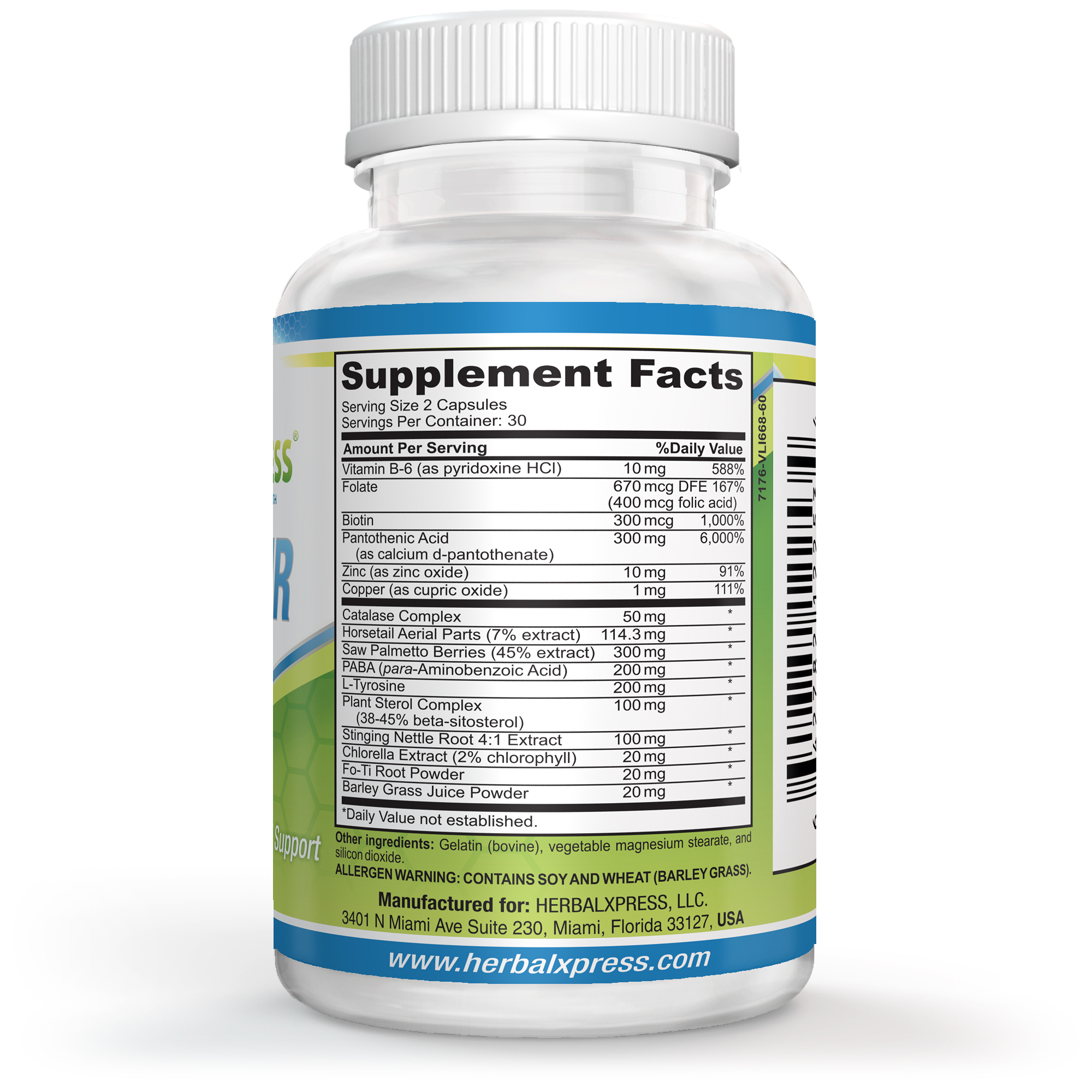 Herbalxpress Gray Hair Formula is specially formulated to support strong, healthy, and natural hair color. This unique formula contains a blend of herbal ingredients that promote the natural pigmentation of hair while nourishing and strengthening the hair follicles. By using Herbalxpress Gray Hair Formula, you can support your hair's natural color while maintaining its strength and vitality.